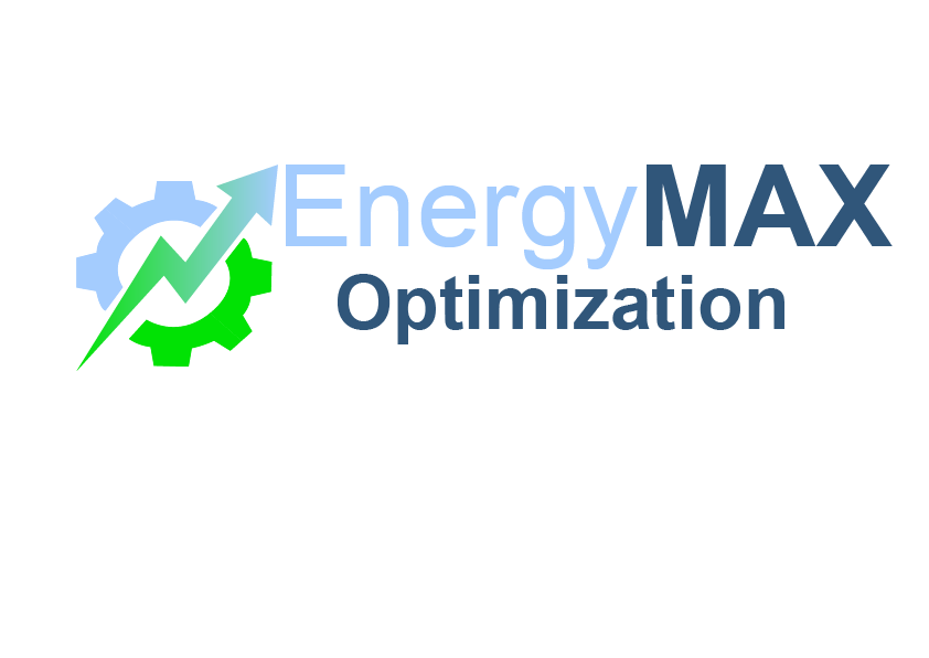 The EnergyMAX Optimization logo featuring gear and upward arrow elements in blue and green, symbolizing improved performance and efficiency. The branding represents energy optimization services designed to reduce costs, improve operational efficiency, and enhance energy performance for commercial buildings and businesses.